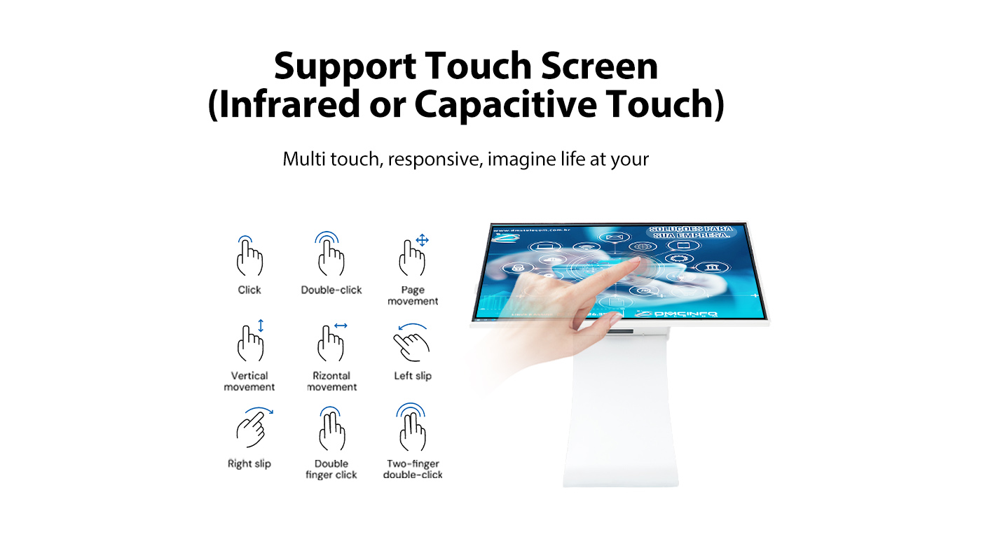 Enhance your business communication with the Capacitive Touch 4K S-Base Inquiry Kiosk. Deliver high-resolution visuals, seamless multi-touch interaction, and intelligent cloud control in one sleek, durable design. Contact HOSDA today for wholesale and custom solutions.